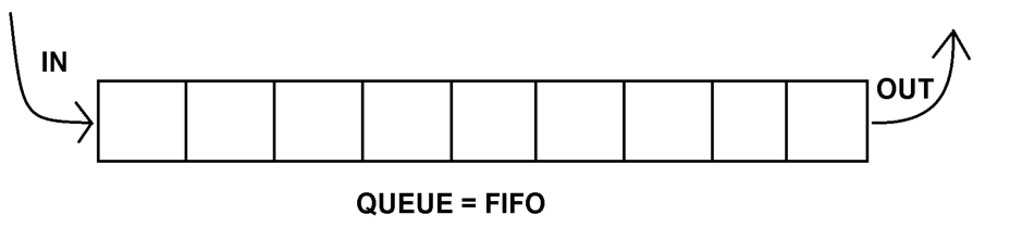 Mereu primul element introdus este primul extras. Ea funcționează ca o coadă reală: Primul venit > Primul servit